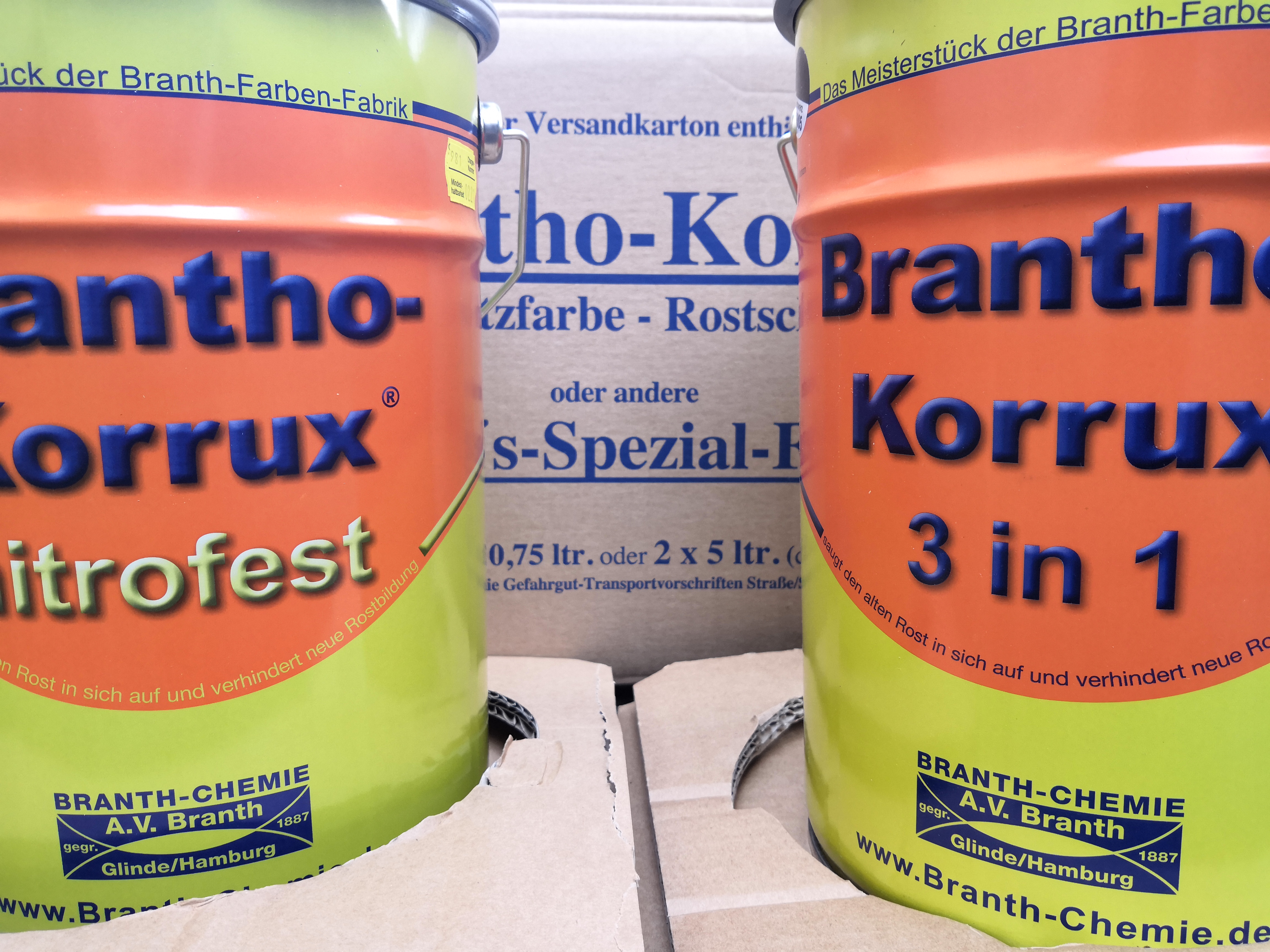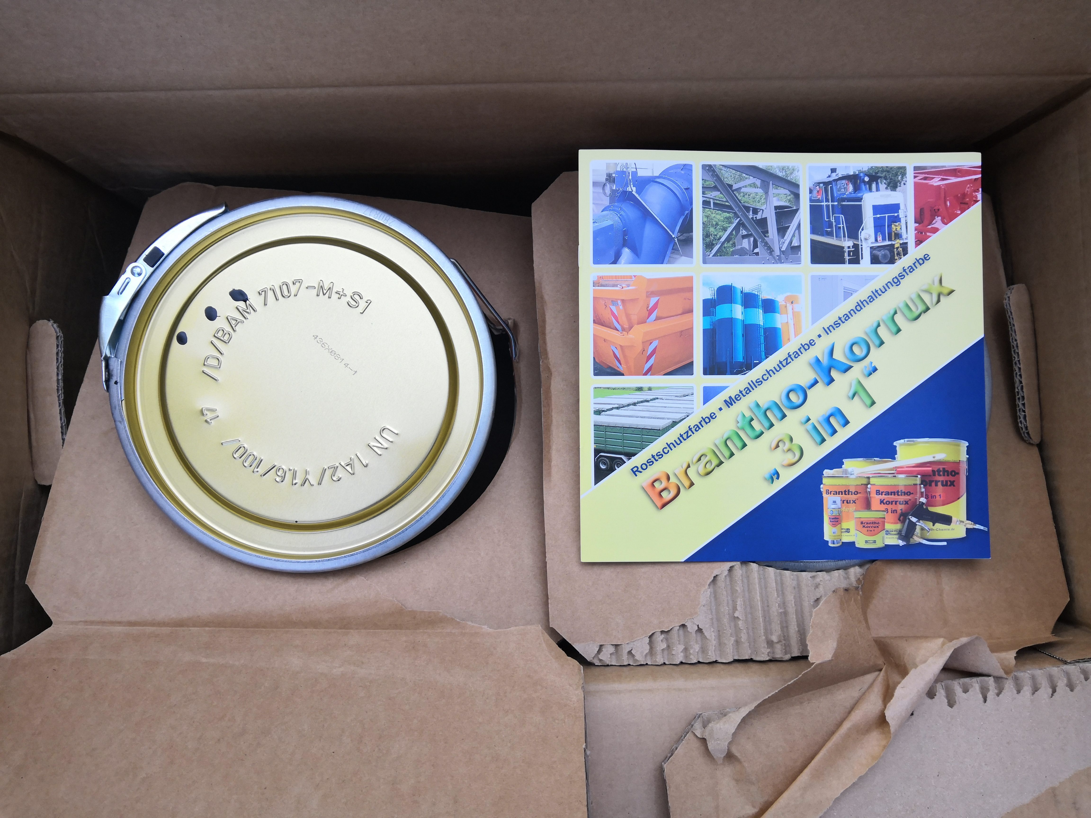 10 litres of Brantho-Korrux Nitrofest and Brantho-Korrux “3 in 1” should ensure two layers of each paint and four layers total.